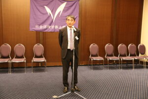 講演会に引き続き行われた懇親会では真家会長の挨拶の後、